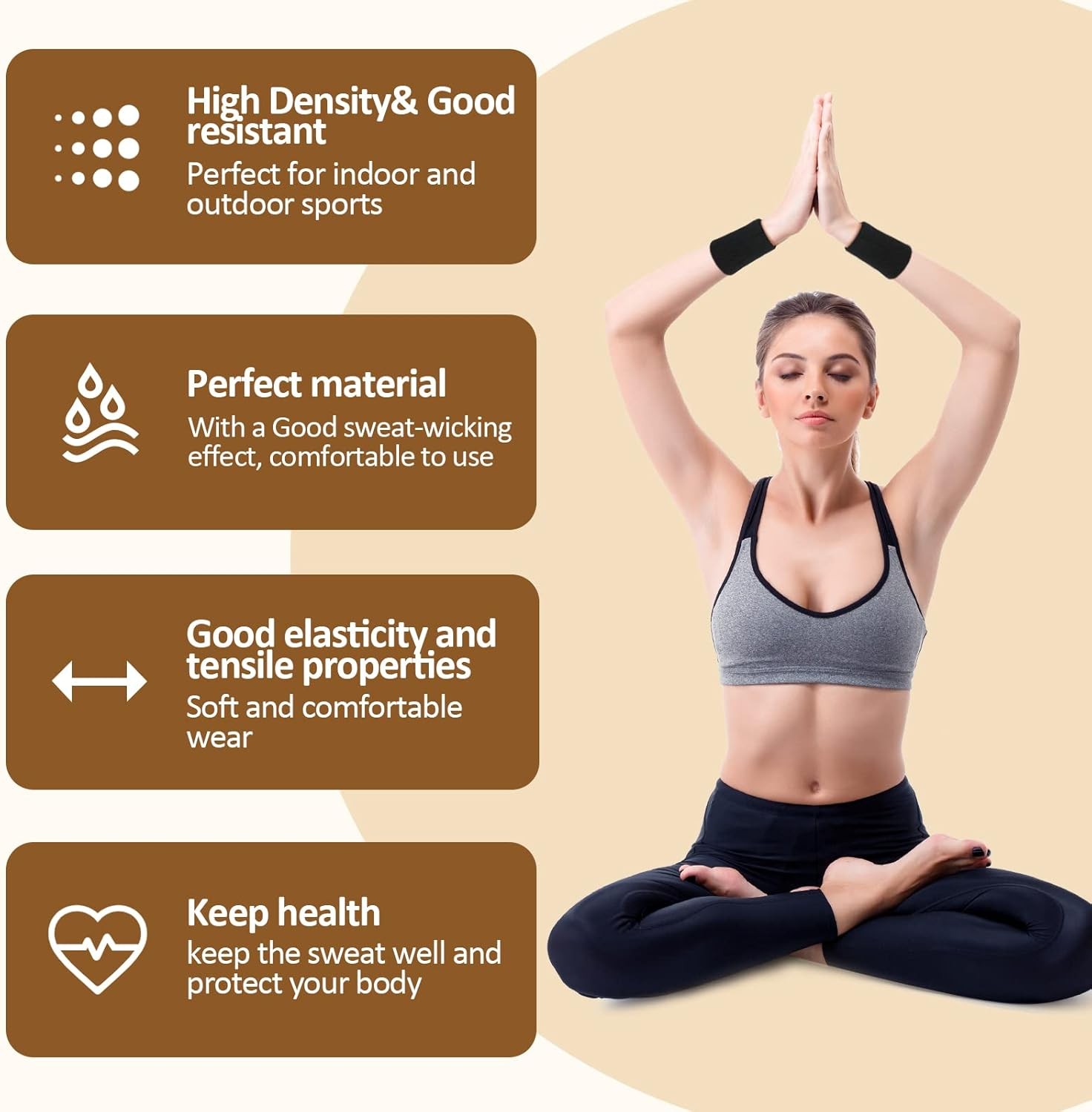 • Great Sweat-absorbent: Our wrist sweatbands adopt an excellent absorbent design that helps you wipe off sweat from your hands when you do exercise or do sports, you would not be distracted by sweaty palms, making you feel comfortable during sport.