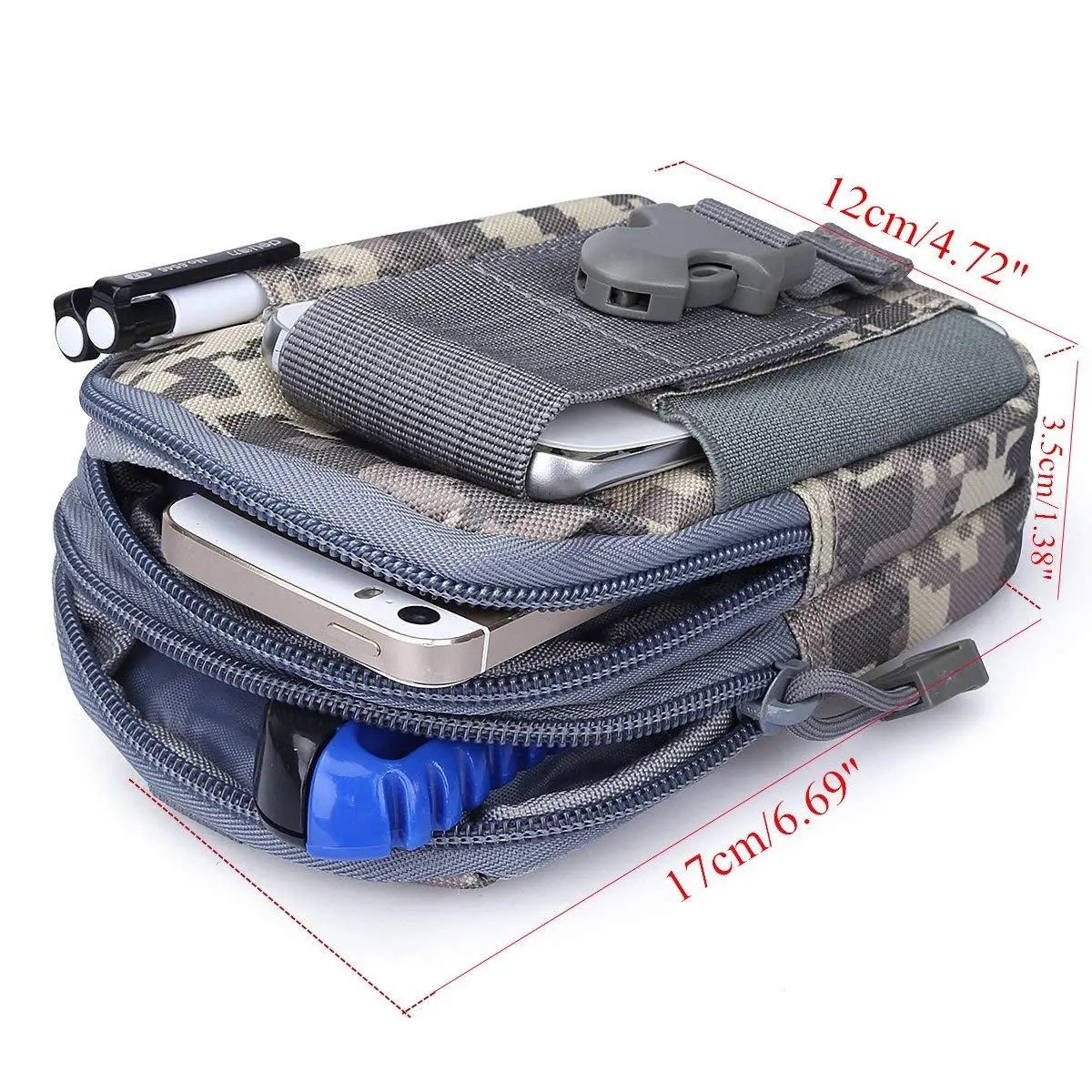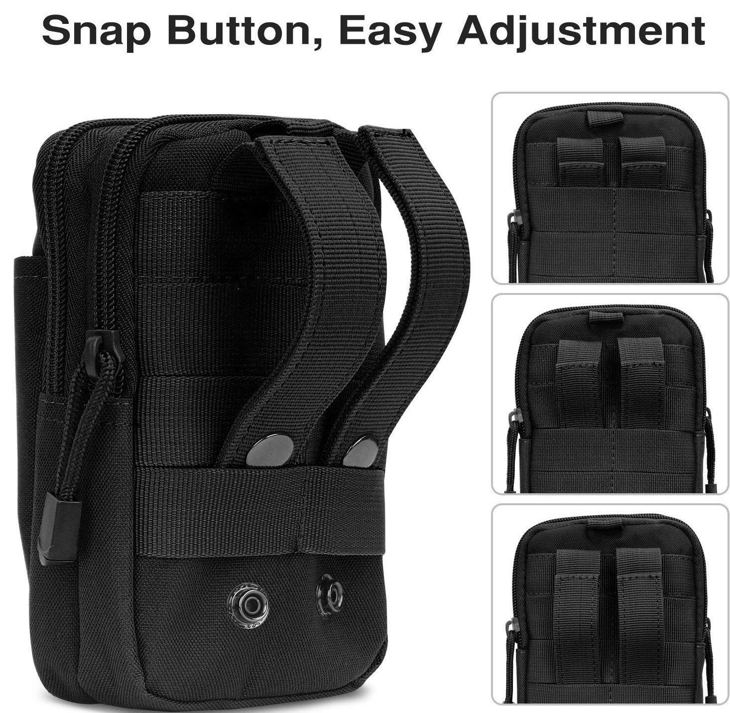 • Versatile pouch designed as a small tactical EDC pouch, MOLLE waist pouch, utility belt pouch, tactical phone pouch, gadget pouch and military pouch. Multi-purpose pockets help you take and classify all your items such as mobile phone, iPhone, Samsung Galaxy, digital camera, keys, wallets, pens, flashlight, compass and other small tools