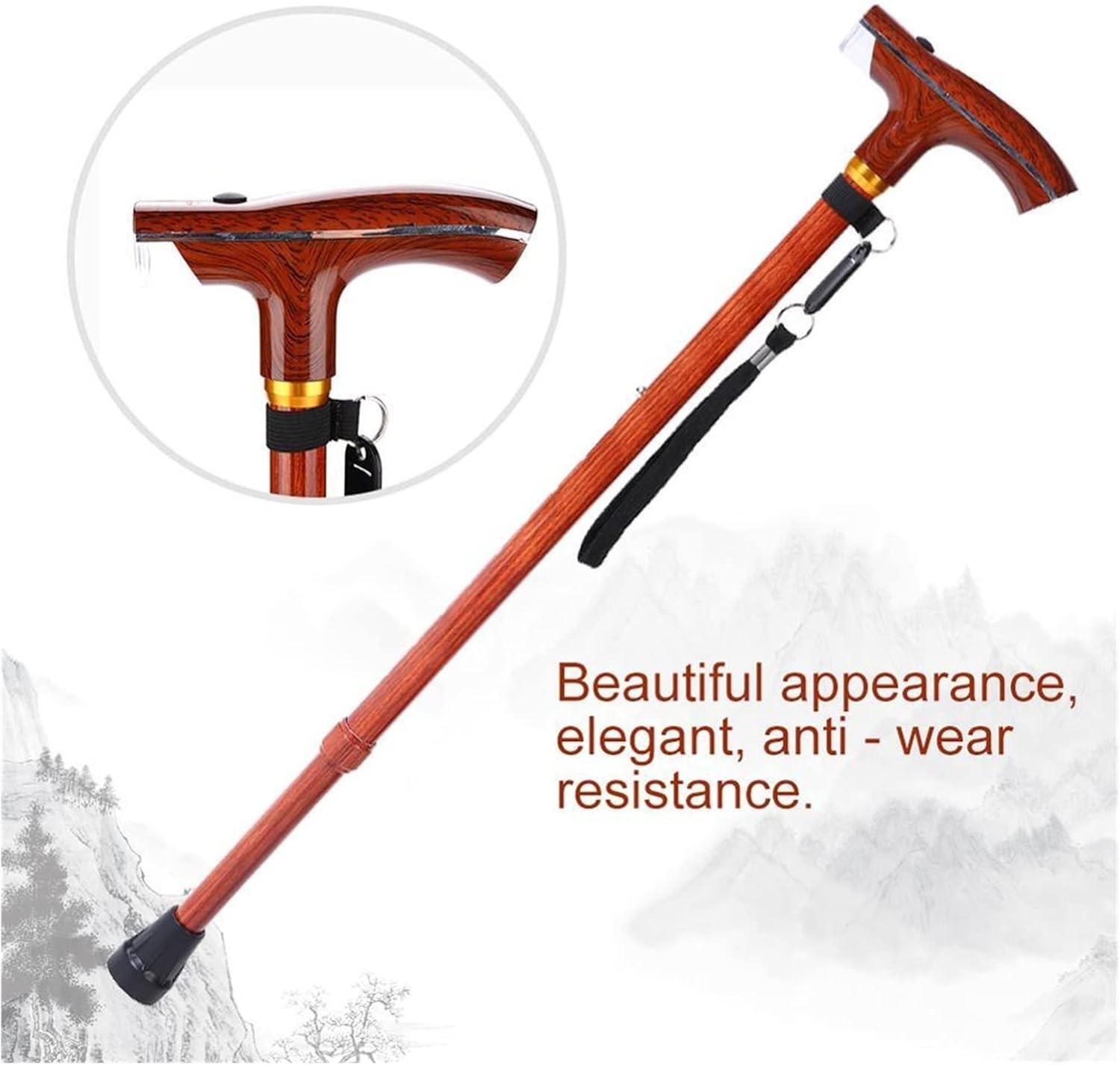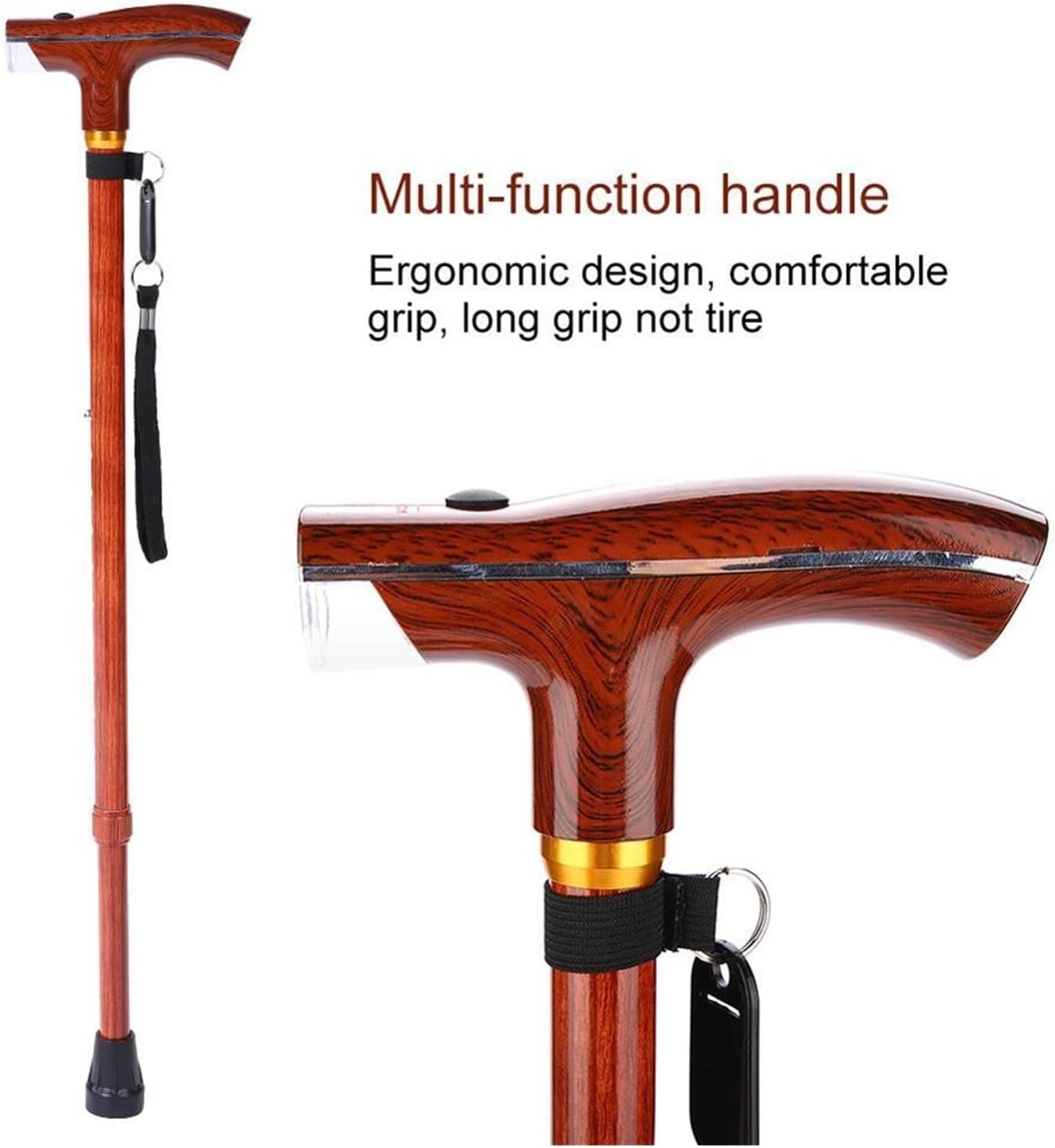 • 1、The cane is made of quality aluminium alloy, lightweight, high strength, anti-rust and durable, the wood-like paint is classic and stylish