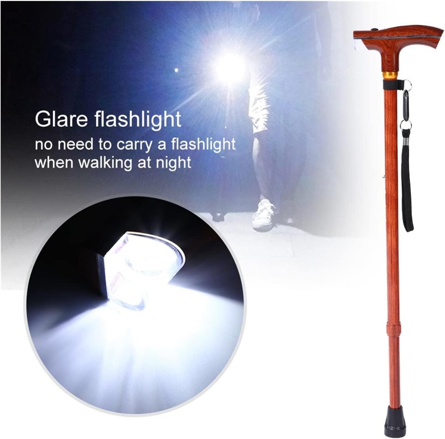 Telescopic Flashlight Cane - Rosewood Color, Multi-Function, Metal, Lightweight
